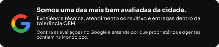 "Atendimento rápido, preço justo e qualidade acima da média. A Monobloco realmente cumpre o que promete: entregaram meu carro com padrão de fábrica. Voltarei sempre que precisar."